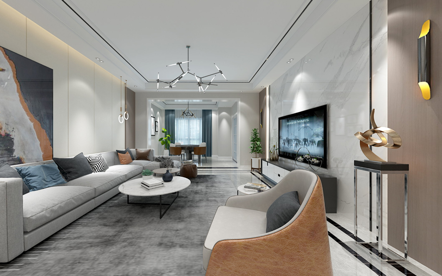 現(xiàn)代風(fēng)格的家具強(qiáng)調(diào)功能性,擁有強(qiáng)烈的色彩對(duì)比、簡(jiǎn)單流暢的線條,前衛(wèi)又時(shí)尚。沙發(fā)選了橄欖綠,溫馨又舒適,原木風(fēng)墻面和通鋪地...[ 了解詳情 ]